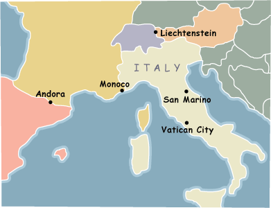 2. ვატიკანი და სან-მარინო კი, აგრეთვე ჯუჯა ქვეყნები, იტალიის ტერიტორიაზეა წარმოდგენილი.