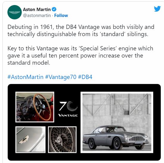 Aston Martin Vantage ყველაზე ძვირადღირებული მანქანაა, რომელიც ბრენდის ისტორიაში შეიქმნა. მანქანა 1997-98 წლებით თარიღდება და სპეციალური სერიის მხოლოდ 19 ეგზემპლარი გამოიცა.