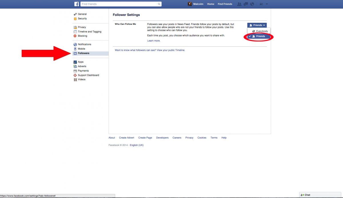 Facebook-ი თქვენს "ფოლოვერებს" თქვენს მეგობრებთან ერთად აძლევს თქვენი საჯარო პოსტების ნახვის საშუალებას. იმისთვის, რომ დარწმუნდეთ, რომ თქვენი პოსტების ნახვის საშუალება მხოლოდ მეგობრებს აქვთ და არა "ფოლოვერებს", შედით საჯარო პოსტების მენიუში და კითხვაზე ვის შეუძლია გამომიწეროს, მიუთითეთ მეგობრები.