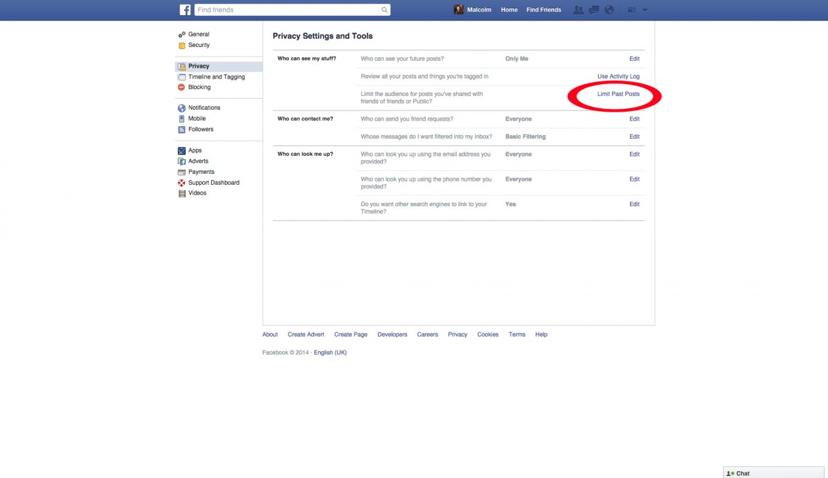 ამის შემდეგ იმის შეცვლაც შეგიძლიათ, თუ ვის შეუძლია თქვენი წარსული პოსტების ნახვა, ამისთვის "შეზღუდვა ძველ პოსტებზე" ღილაკს უნდა დააკლიკოთ და ცვლილებას დაეთანხმოთ, შედეგად თქვენ შეგიძლიათ იმ ადამიანების წრე განსაზღვროთ, ვისაც წარსულში თქვენ მიერ გამოქვეყნებული პოსტების ნახვა შეუძლიათ.