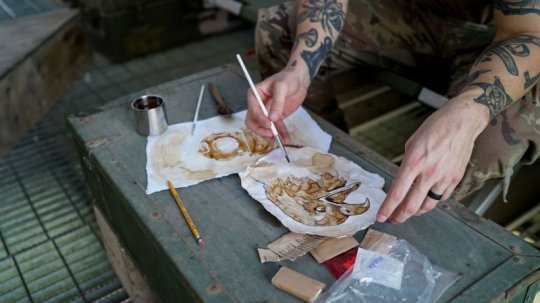 მშრალ კვებაში კი, რომელსაც ჯარისკაცებს ურიგებდნენ ხსნადი ყავის პაკეტებიც შედიოდა. სწორედ იქ გატარებული 8 თვის გასახსენებლად დაიწყო მამაკაცმა ხატვა, თუმცა ფერადი საღებავების ნაცვლად ის ხსნად ყავას იყენებდა.