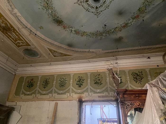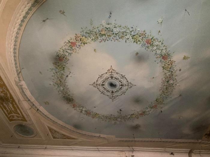 - სოციალურ ქსელში ფოტოები გავრცელდა, რომლებიც შენობის ახლანდელ მდგომარეობას ასახავს... ბევრგან დავწერე და მკითხველსაც მინდა ავუხსნა, რომ ეს ჭერი და მოხატული კედლები ავთენტური არ ყოფილა. ბებიასგან ვიცი, ბავშვობაში მამაჩემსაც უნახავს და ახსოვდა, რომ იყო სამკურნალო მცენარეებით და ყვავილებით მოხატული, ულამაზესი იყო.... ლენტები (ე.წ. ვინიეტკები) იყო გაკეთებული ლათინური წარწერებით...