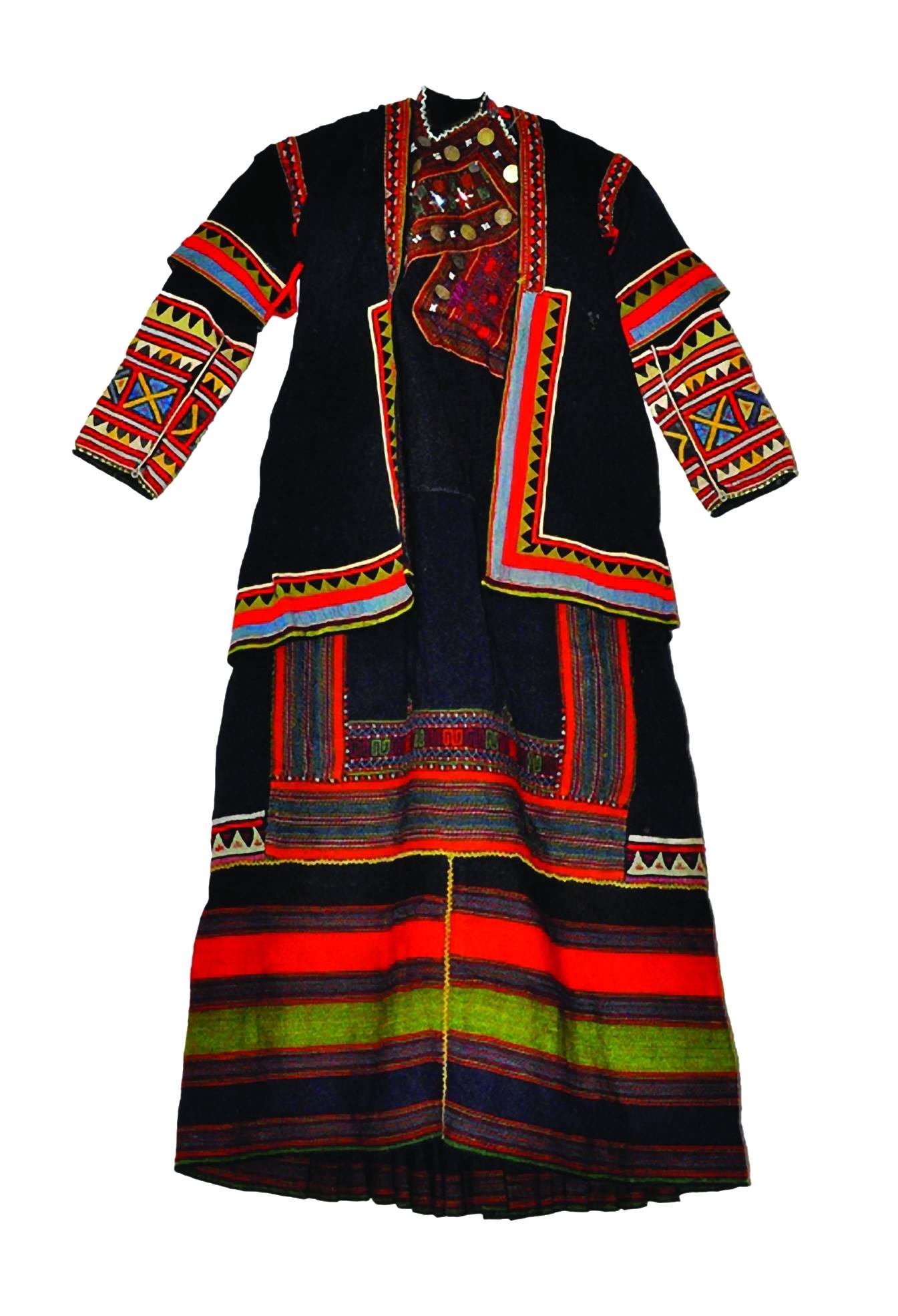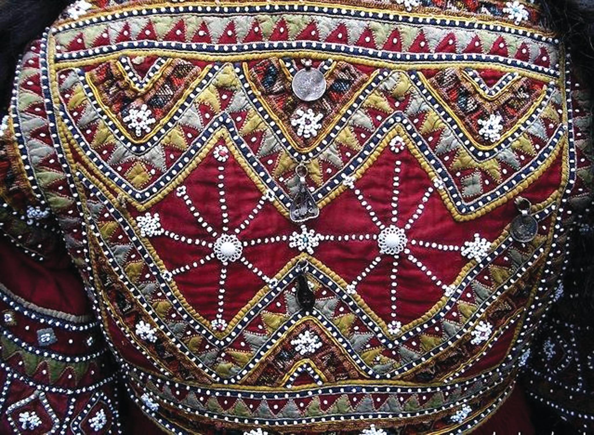 ხევსური ქალის ტალავარი. სადიაცო, ქოქლო. მასალა: ტოლი, შალის ფერადი ძაფები, ღილ-კილოები, მონეტები (საქართველოს ეროვნული მუზეუმის არქივიდან)
