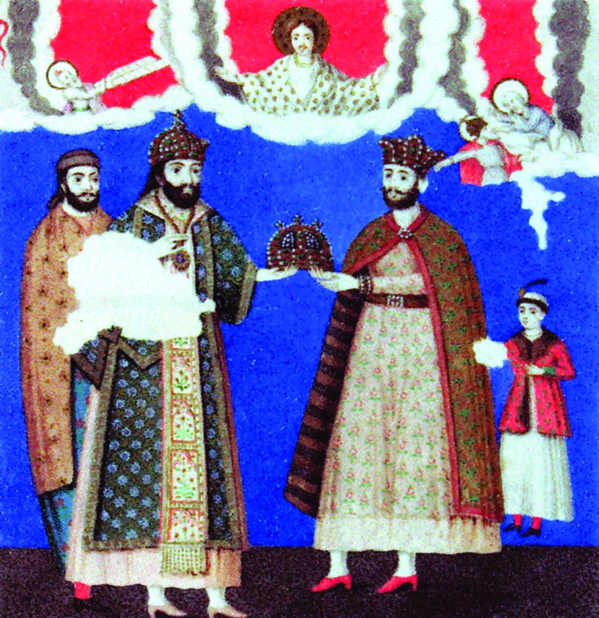 მეფე გიორგი XI და კათოლიკოსი ნიკოლოზ VII ამილახვარი.სვეტიცხოვლის ფრესკის რეკონსტრუქცია