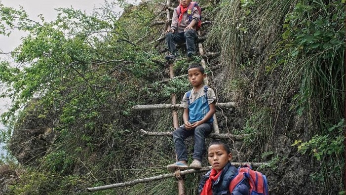 800-მეტრიანი კიბე კლდეზე, რომელსაც მოსწავლეები ყოველდღე გადიან