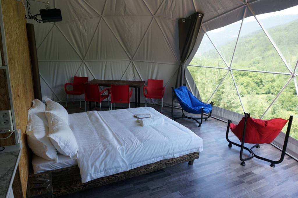 რაჭაში, ამბროლაურის რაიონში ახალი ეგზოტიკური კარვების სასტუმრო გაიხსნა. Glamping Georgia სოფელ კრიხში მდებარეობს და სხვა ბანაკებისგან იმით განსხვავდება, რომ ნომერი მაქსიმალურ კომფორტზე და იდეალურ ხედებზეა გათვლილი. ტყეში ჩაფლული სასტუმრო ონლაინ დაჯავშნის ყველაზე დიდ საიტზე booking.com-ზე უკვე გამოჩნდა.