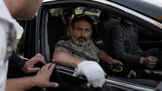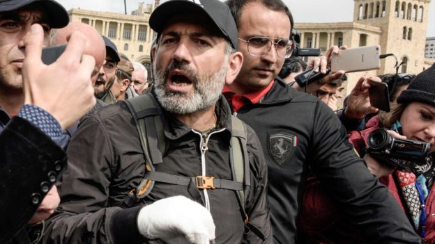 ნიკოლ ფაშინიანი ქვეყნის ყოფილი პრეზიდენტისა და ამჟამად უკვე ყოფილი პრემიერ-მინისტრის სერჟ სარგსიანის წინააღმდეგ გამართულ საპროტესტო აქციებს ჩაუდგა სათავეში. მრავალათასიანი მშვიდობიანი საპროტესტო მსვლელობა, საბოლოო ჯამში, მთავრობის მეთაურის ნაბაყოფლობით გადადგომით დაგვირგვინდა.