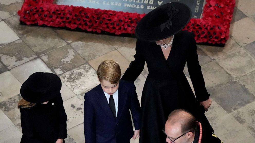 დედოფლის დაკრძალვაზე უელსის პრინცესა ქეით მიდლტონი შვილებთან, პრინც ჯორჯთან და პრინცესა შარლოტასთან ერთად გამოჩნდა.