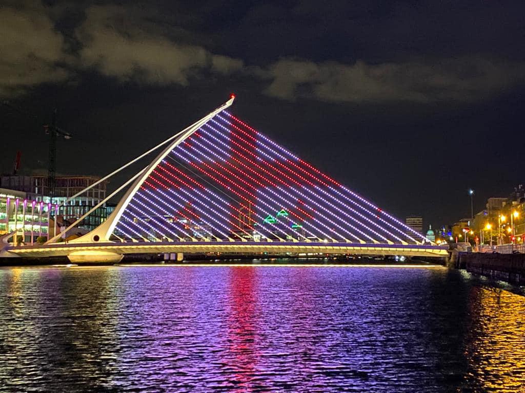 ეს კი ირლანდიაა, დუბლინი, სადაც Samuel Beckett -ის ხიდი საქართველოს დროშის ფერებით განათდა.