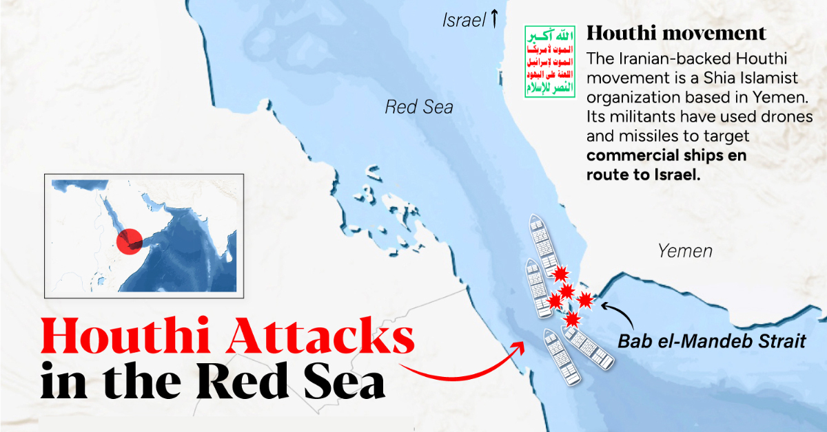 პირველად, ორ თვეზე მეტი ხნის განმავლობაში, ისრაელის ჰამასთან ომმა გლობალური ვაჭრობის ფართო შეფერხება გამოიწვია - იემენელმა ჰუსიტებმა, პალესტინელებთან სოლიდარობის გამო, ცეცხლი გაუხსნეს კომერციულ გემებს. ამის გამო უმსხვილესმა საერთაშორისო გადამზიდავმა კომპანიებმა შეაჩერეს კონტეინერების, ნავთობის, თხევადი გაზისა და სხვა საქონლის ტრანსპორტირება ევროპასა და აზიას შორის მთავარი სავაჭრო გზის გასწვრივ - წითელი ზღვის, სუეცის არხისა და ბაბ ელ-მანდების სრუტის გავლით.