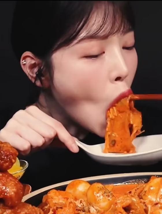 ახალგაზრდა კორეელი იუთუბერი უზარმაზარ თეფშზე დადებულ სხვადასხვა სახის საკვებს მიირთმევს, ეს იმდენად ბევრი საჭმელია, რომ პატარა ოჯახს გამოკვებავდა, მაგრამ ინფლუენსერი ამ კერძების სხვისთვის გაზიარებას არ აპირებს.