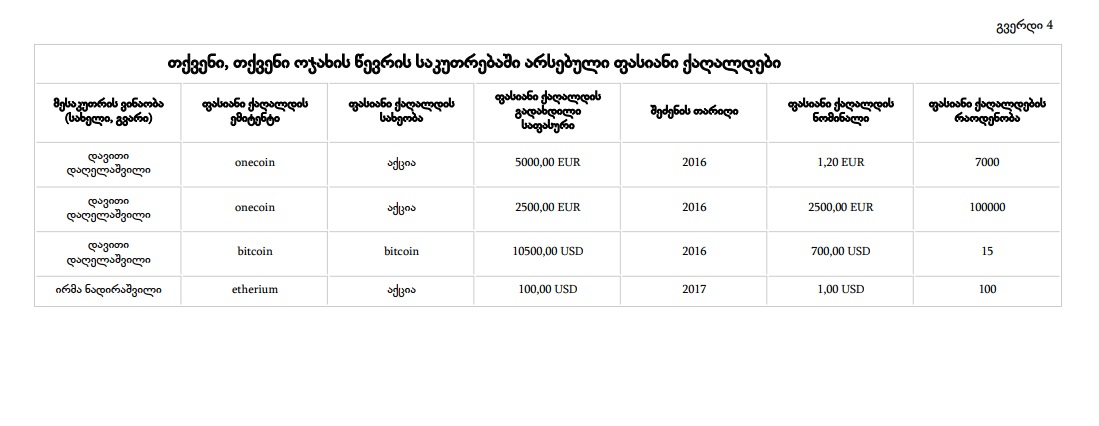 ირმა ნადირაშვილი 15 ბიტკოინს ფლობს - მისი ოჯახის ანგარიშზე სხვა კრიპტოვალუტაცაა
