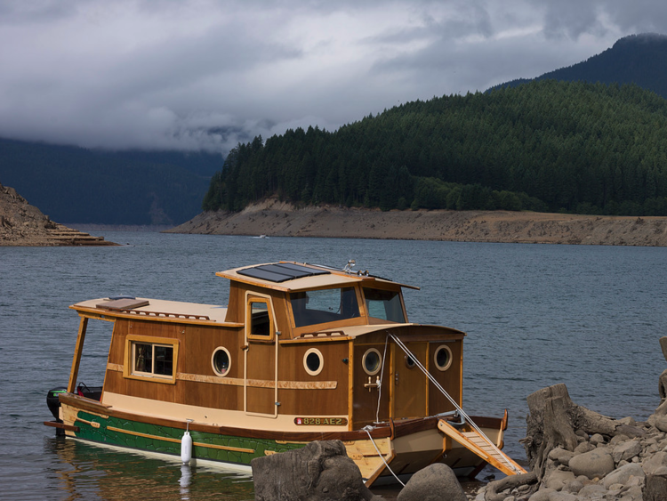 გემთმშენებელმა და დიზაინერმა კერი ელვუდმა ეს პატარა სახლი ნავი ბუნებასთან სიახლოვისა და მინიმალისტური ცხოვრების წყურვილის გამო შექმნა. სახლი გაერთიანებულ სამეფოში მდებარეობს და მისმა მეპატრონემ მშენებლობაში თითქმის 2 წელი დახარჯა. ის მზის ენერგიას იყენებს.