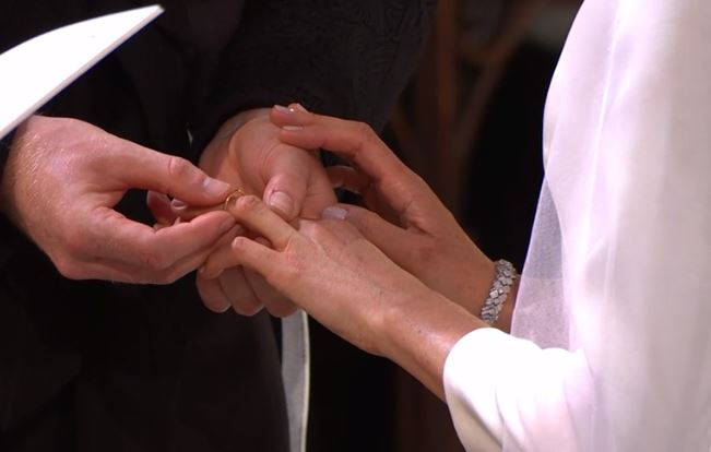 წმინდა ჯორჯის სახელობის ეკლესიაში საქორწინო ცერემონიალი მიმდინარეობს. მეგანმა და ჰარიმ უკვე დადეს ფიცი, თუმცა საეკლესიო რიტუალი ჯერ არ დასრულებულა.