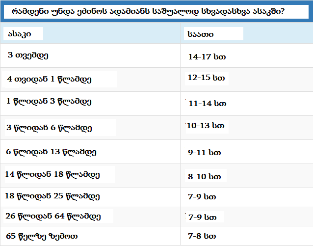 რამდენ საათს უნდა გვეძინოს სხვადასხვა ასაკში და რას იწვევს არასაკმარისი ძილი