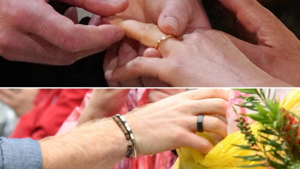 სამეფო ოჯახის წევრი მამაკაცები როგორც წესი ნიშნობის შემდეგ ბეჭედს არ ატარებენ. ამ წესს ემორჩილებოდნენ პრინცი ჰარის ბაბუა, მამა და ძმა და ნიშნობის ბეჭდის ტარებისგან თავი შეიკავეს. ჰარი და მეგანი, რომლებსაც ბევრი სამეფო ოჯახის თანამედროვე წარმომადგენლებად მიიჩნევს, ნიშნობის ბეჭდებს ატარებენ. ბეჭდების გაცვლა მათი ჯვრისწერის სცენარშიც იყო გაწერილი.