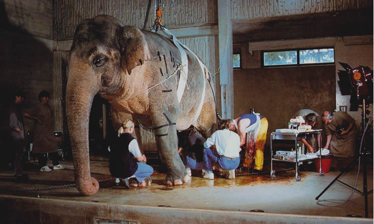 ისეთი დიდი ცხოველების ოპერაცია, როგორიც სპილოა, რა თქმა უნდა, ყოველდღე არ ტარდება, თუმცა არც განსაკუთრებულ იშვიათ შემთხვევებს განეკუთვნება.გასაკვირი არ იქნება თუ ვიტყვით, რომ მსგავსი მასშტაბის ცხოველისთვის ოპერაციის გაკეთება მარტივი საქმე ნამდვილად არ არის, ოპერაციას თავი რომ დავანებოთ, სირთულეს ანესთეზიის გაკეთება და სწორი დოზის განსაზღვრაც კი წარმოადგენს. შემდეგი ეტაპი სპილოს სწორ პოზიციაში ჩაძინებაა. ამ პროცესში ერთ-ერთი მთავარი ამოცანაა, რომ ჩაძინებულმა სპილომ დაწოლისას არაფერი დაიშავოს და შემდეგ ისე დაწვეს, რომ სუნთქვას ხელი არ შეუშალოს და ამასთანავე, ვეტერინარებს ოპერაციის ეფექტურად ჩატარების შესაძლებლობა მისცეს, სწორედ ამიტომ ერთ-ერთი სპილო დრუკი ქირურგებმა და მომვლელებმა სპეციალური ქამრების მეშვეობით ოპერაციის დღეს ჭერზე ჩამოკიდეს, თუმცა, ცხოველის ქამრებთან შეგუება რამდენიმე კვირით ადრე დაიწყეს, რათა მისთვის დისკომფორტის განცდა შეემცირებინათ.