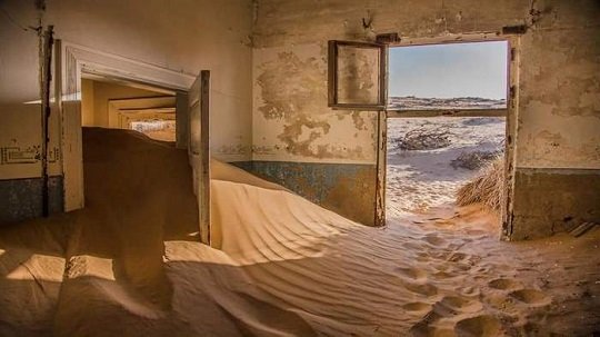 7. უდაბნოს მიერ დაპყრობილი: მიტოვებული სახლი "ალმასის ქალაქში", ნამიბიის უდაბნო.