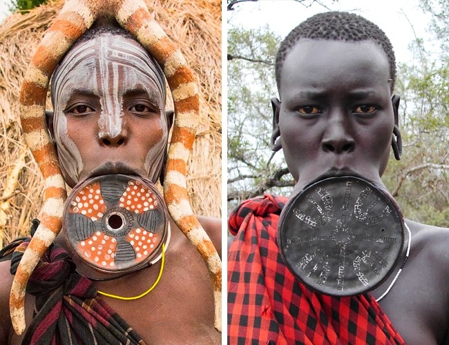 ეთიოპიაში მაცხოვრებელ მურსის ტომს მიაჩნია, რომ ქვედა ტუჩის გაწელვა მიმზიდველია, რისთვისაც სპეციალურ დისკებს იმაგრებენ. რაც უფრო გაწელილი აქვს გოგონას ტუჩი, მით უფრო მეტს იხდიან მასში. მურსის ტომს ასევე სჯერა, რომ ეშმაკის სული ადამიანში პირიდან შედის, დამაგრებულ დისკს კი მისი შეჩერება შეუძლია. მეორე ვერსიის თანახმად, დამაგრებული დისკების საშუალებით, მურსის ტომელი ქალების მონებად წაყვანა შეუძლებელია.