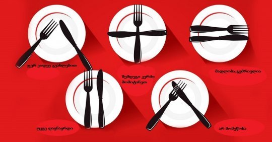 3. რესტორანში ყოფნისას ყურადღება მიაქციეთ დანა-ჩანგლის განლაგებას. ეს ძალიან მნიშვნელოვანი მომენტია, სწორედ მათი დახმარებით კითხულობს ოფიციანტი თქვენს განზრახვას და დამოკიდებულებას.