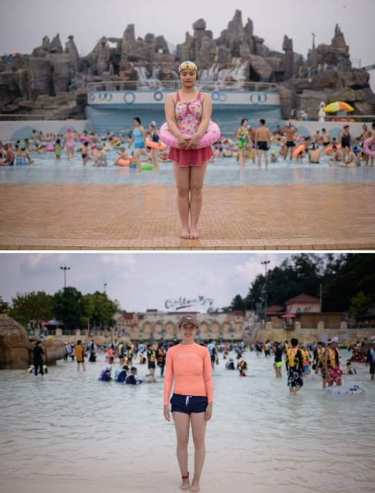 გოგონა წყლის პარკში - ჩრდილოეთ კორეაში და ქვემოთ სამხრეთ კორეაში