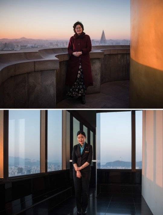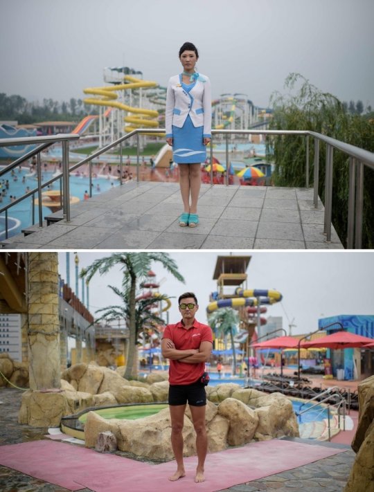 ფხენიანის Munsu Water Park– ის თანამშრომელი და სამხრეთ კორეაში One Mount Water Park -ის თანამშრომელი