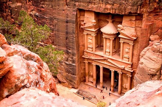 ტაძარი ქალაქ პეტრაში (იორდანია)–ეს ერთ-ერთი ცნობილი და უნიკალური ნაგებობაა, რომელიც მეფის მავზოლეუმს წარმოადგენს, სხვა ვერსიით-ისიდას ტაძარს. "ელ-ჰაზნე", ფარაონის საგანძური, როგორც მას არაბები უწოდებენ, პირველ საუკუნეშია შექმნილი. იგი ღია პლატფორმაზე მდებარე უზარმაზარ კლდეშია გამოკვეთილი და უძველესი არქიტექტორებისა და ქვისმთლელების დიდებული ოსტატობის მაგალითია. ასეთი მასშტაბების საოცრების შექმნა ძალიან რთულია დღევანდელ პირობებშიც კი. გასაოცარია არა მხოლოდ შედევრის სიდიადე და გაანგარიშებების სიზუსტე, არამედ ისიც, თუ როგორ მოახერხეს კლდეში გამოეკვეთათ ასეთი მაღალი (42 მეტრი) შენობა, მაშინ როცა გარშემო საერთოდ არ არის ხე, რომელიც ასე საჭიროა მშენებლობისთვის. მეცნიერთა ერთი ჯგუფის ვერსიით, მისი მშენებლობა დაწყებულია და მიმდინარეობდა ზემოდან ქვემოთ. ელ-ჰაზნეს შესასვლელში ექვსი კოლონაა. ნაგებობა დეკორირებულია გასაოცარი ბარელიეფებით. შენობას ქვის ურნა აგვირგვინებს, რომელშიც თითქოს ოქრო და ძვირფასეულობა ინახება.