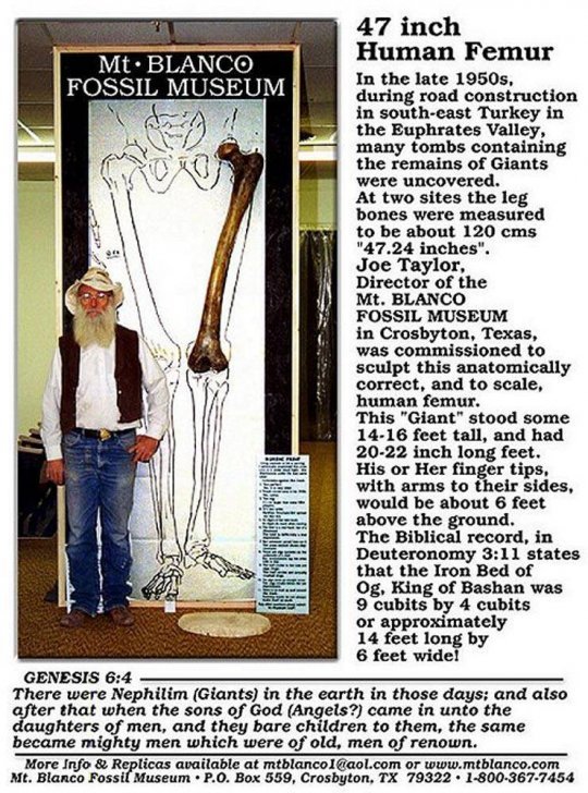 თურქეთში აღმოაჩინეს ადამიანის ჩონჩხის განამარხებული ფეხის ძვალი, რომლის სიგრძე 120 სმ. იყო. ძვლის მიხედვით თუ ვიმსჯელებთ, მისი პატრონი სიცოცხლეში, დაახლოებით, 6 მ. უნდა ყოფილიყო.