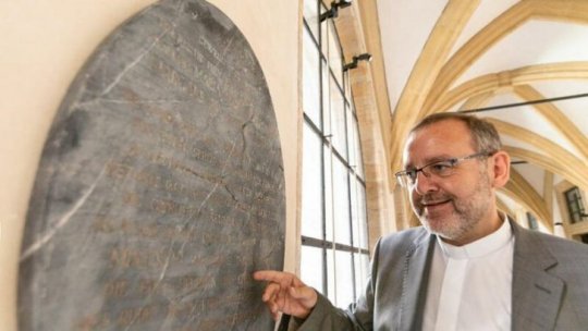 მუზეუმის დირექტორი ხოლგერ კემპკენსი, საფლავის ქვასთან