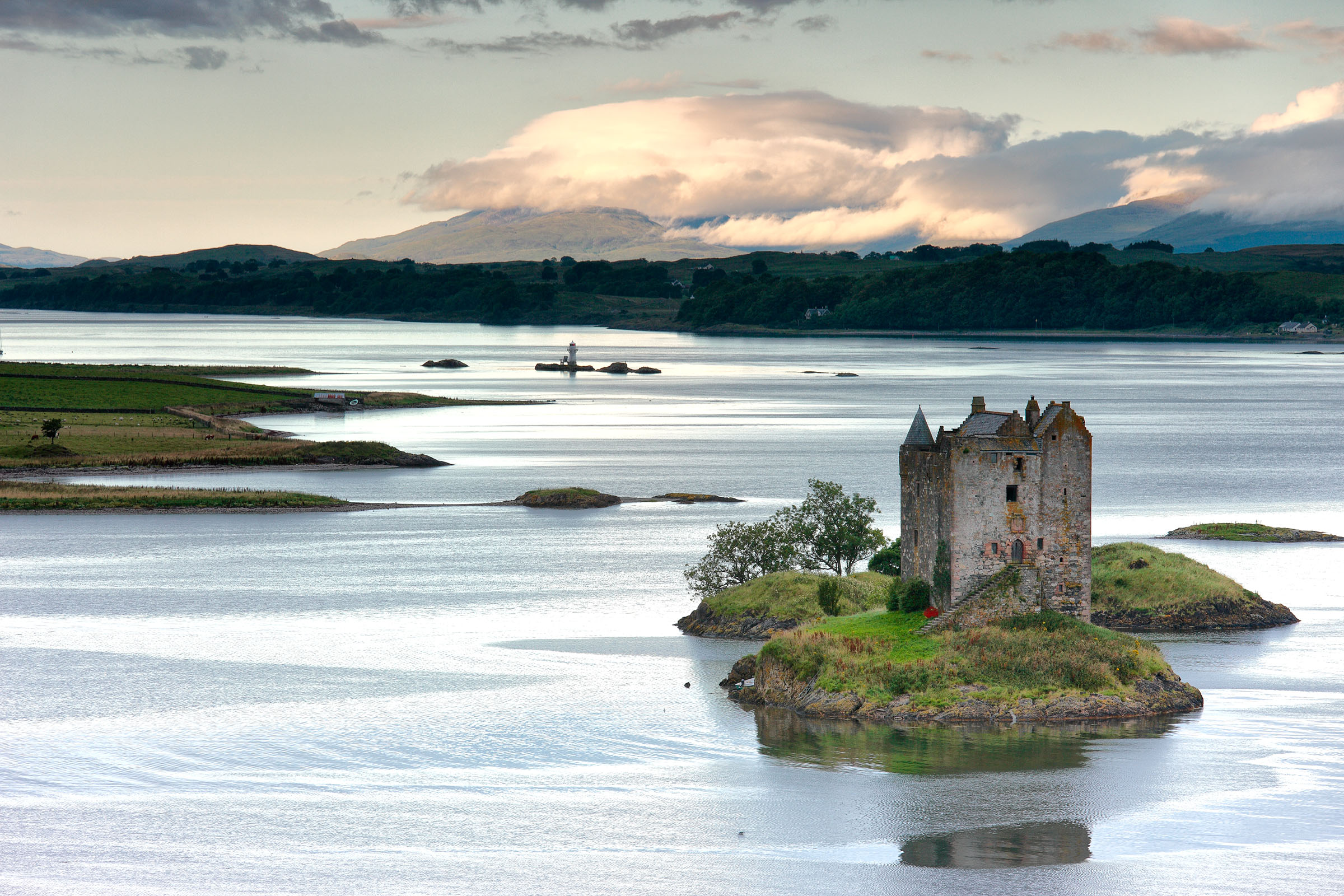 სასახლე სტალკერი, შოტლანდია - სტალკერი "მიმინოებზე მონადირეს" ნიშნავს. სასახლე 1320 წელს არის აგებული და მაკჯუგალების კლანს ეკუთვნოდა. იმ დროიდან მისმა კედლებმა ბევრი ცვლილება განიცადა, თუმცა 1965 წელს მისი მფლობელი პოლკოვნიკი სტიუარტი გახდა, რომელმაც საკუთარი ხელით, ცოლთან ერთად აღადგინა სასახლის უწინდელი სახე.