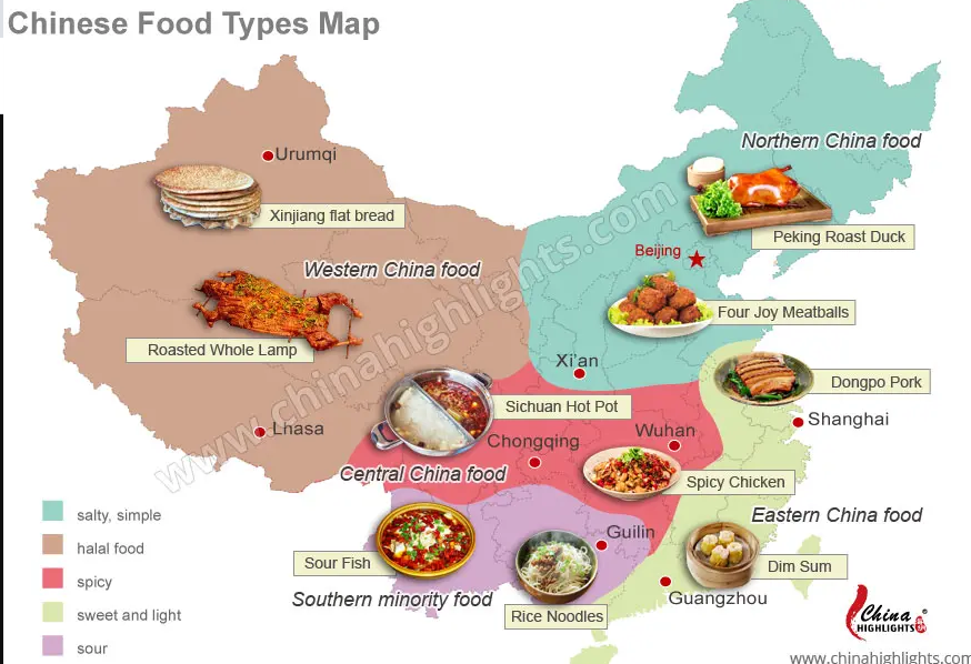 არსებობს ჩინეთის ოთხი ყველაზე ცნობილი რეგიონული სამზარეულოს სკოლა, ესენია: „ჩუანცაი“ – სიჩუანური სამზარეულო, „იუეცაი“ – კანტონური სამზარეულო, „ლუცაი“ – შანტუნგის სამზარეულო და „ხუაი'იანგ ცაი“ – უ ძიანგსუს სამზარეულო.