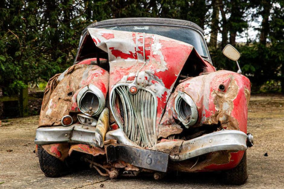 ეს 1960 წლის Jaguar XK150 S ფარდულში მას შემდეგ იმყოფება, რაც 1996 წელს მისმა მფლობელმა წვიმიან დღეს მართვისას საჭე ვერ დაიმორჩილა და ხეს შეეჯახა. ავტომობილის მეპატრონე 1969 წელს გარდაიცვალა. მანქანა კი აუქციოზე მიმდიარე წლის მაისში გაიტანეს. იგი 127 552 დოლარად გაიყიდა, რაც მის ფასს ექვსჯერ აღემატება. იაგუარი ძვირად ღირებულ რემონტს საჭიროებს. რის შემდეგაც, მისი ფასი დაახლოებით ათჯერ გაიზრდება.