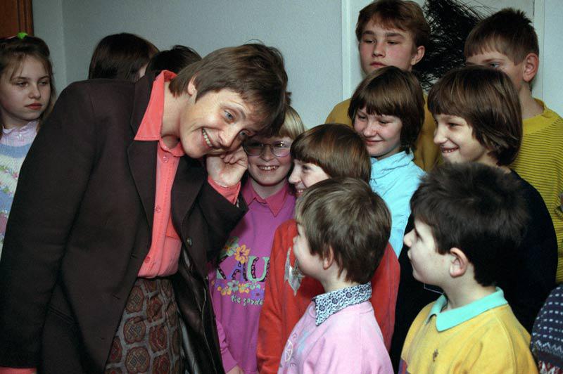 ამ ფოტოზე ანგელას ლეიკემიით დაავადებულ ჩერნობილელ ბავშვებთან ერთად ხედავთ