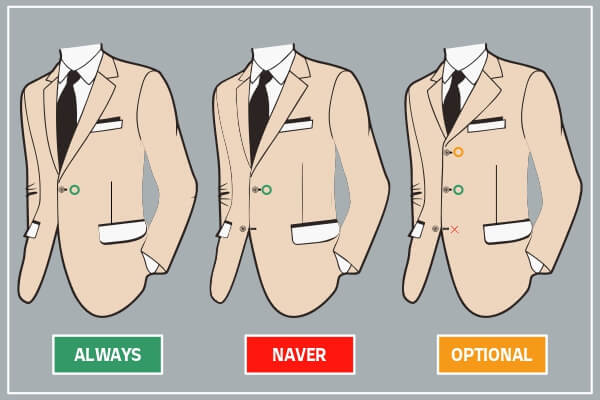 სამღილიანი პიჯაკის ტარების ძირითადი პრინციპია: “ხანდახან, ყოველთვის, არასდროს". ეს ნიშნავს იმას, რომ ხანდახან უნდა შეიკრათ ზედა ღილი, ყოველთვის შუა ღილი და ბოლო არასდროს. თუკი ორღილიანი პიჯაკი გაქვთ, აქაც იგივე პრინციპი მოქმედებს. ეს არის მამაკაცის მოდის ურყევი სტანდარტი. მამაკაცის კოსტიუმების დიზაინერები ხშირად ქურთუკებსა და ჟილეტებსაც კი ქმნიან ისე, რომ ქვედა ღილი კარგად გამოჩნდეს ცალკე.