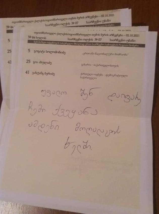 "სააკაშვილის ახალი ცოლი", "მიჰა ჰამოვიდა"- ნახეთ სახალისო მინაწერები ბიულეტენებზე 2 ოქტომბრის არჩევნებიდან