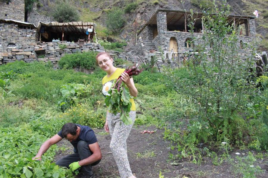 - ძალიან არ ცივა, მაგრამ ახლა აგიზგიზებულ ღუმელთან ვზივარ და იმდენად კარგია, სურვილი გამიჩნდა აქვე იყოთ და ვსაუბრობდეთ. მართალია პირველყოფილი გარემოა, მაგრამ თავის ხიბლი და სითბო აქვს ამ ყველაფერს... ხახაბოში გვაქვს მეურნეობა, ძირითადად ეს არის ბაღჩა... დათესილი გვაქვს კარტოფილი, ჭარხალი, ნიორი, ოხრახუში, ქინძი, კამა.