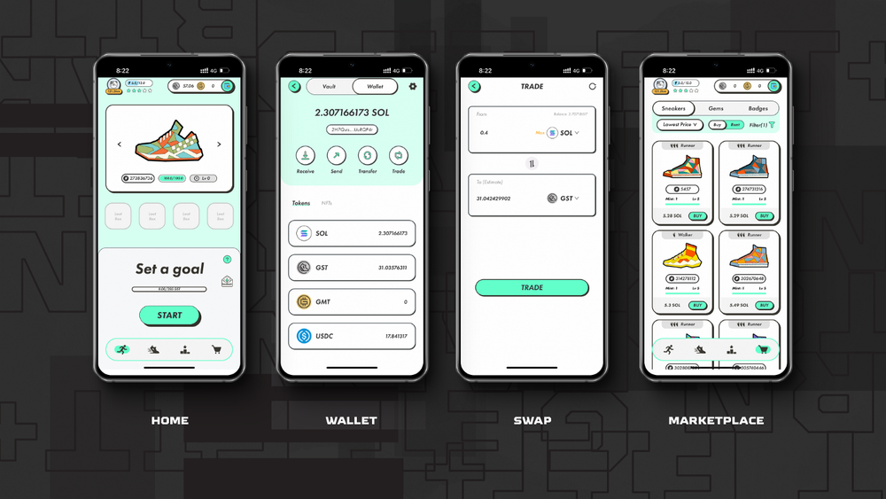 STEPN ერთგვარი ფიტნეს აპლიკაციაა, რომელიც Solana-ს ბლოკჩეინზე აიგო. აპლიკაცია სიარულში, ძუნძულში ან სირბილში გარკვეული რაოდენობის კოინებს გვირიცხავს. STEPN-ში თამაშის დასაწყებად, მომხმარებელს თავდაპირველად, NFT-ბოტასების შეძენა უწევს. მომხმარებელს დღის განმავლობაში გარკვეული რაოდენობის „ენერგია ეძლევა“ და ამ ენერგიის გახარჯვით კრიპტო გამომუშავდება.