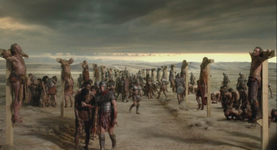71 წელს ლუკანიის ბრძოლა აჯანყებულთა არმიისთვის საბედისწერო აღმოჩნდა. აჯანყებულთა ლიდერი მოკლეს ჰერარდესკა კი მრავალრიცხოვან ტყვეთა შორის აღმოჩნდა. საშინელი ჩვეულების თანახმად, გზებზე აღმართულ ჯვრებზე ჯვარს აცვეს 6000 ტყვე. მათ შორის გახლდათ ჩვენი ამბის გმირიც, მაგრამ იმ დღეს მას ბედმა გაუღიმა. გენერალმა კრასუსმა ის სხვათა შორის შენიშნა, რადგან გატანჯული, სისხლიანი და ჭუჭყიანიც კი ლამაზი იყო.