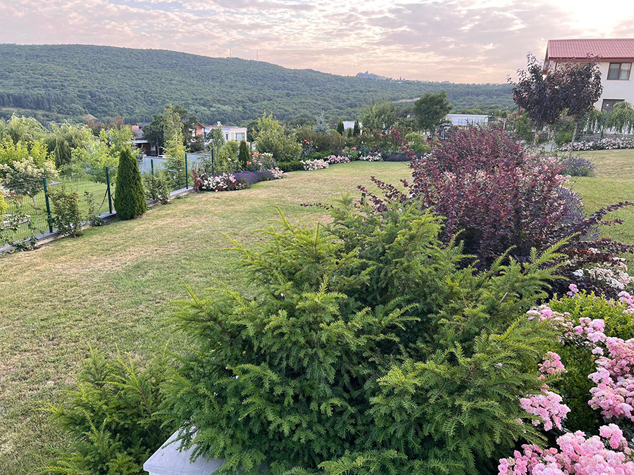 მშენებლობამ ძალიან გააფუჭა ნიადაგი, ამიტომ დიდი რაოდენობით მიწა შემოვიტანეთ. აქტიურად ვეძებდი ლანდშაფტის დიზაინერს, რადგან ამ საქმეში არანაირი გამოცდილება არ მქონდა. ბევრი ნამუშევარი ვნახე. განსაკუთრებით მომეწონა თამარ თავართქილაძის ნამუშევრები და სხვაზე აღარც მფიქრია, ყველაფერი მას მივანდე. ბაღი ჯერ მხოლოდ სამი წლისაა და წინ აქვს მთელი სილამაზე. თამარმა უზარმაზარი შომა ჩადო ამ ბაღში. თითოეული მცენარის დარგვის პროცესს თავად გაუწია ზედამხედველობა. ყვავილების შერჩევის პროცესშიც აქტიურად იყო ჩართული. განაგრძეთ კითხვა