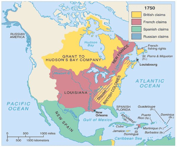ჩრდილოეთ ამერიკის ტერიტორიები, რომლებსაც ფრანგები, ინგლისელები და ესპანელები აკონტროლებდნენ
