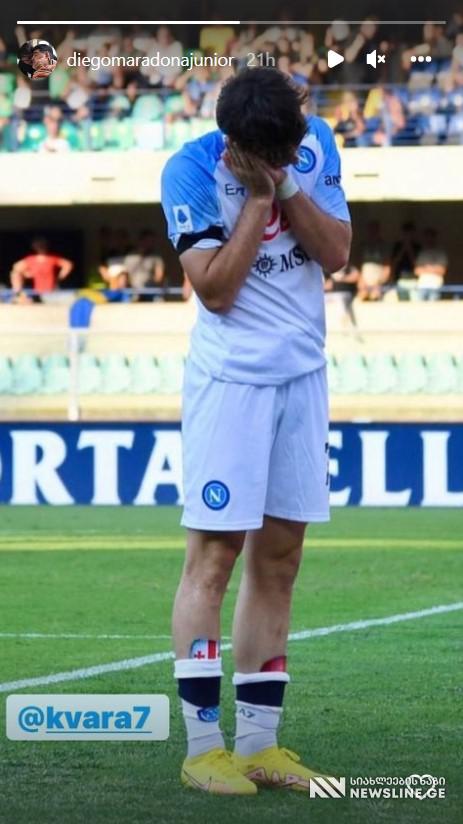 მარადონას შვილი, ინსტაგრამის სთორებში ხშირად აქვეყნებს კვარცხელიას გოლების ვიდეოებსა და ფოტოებს, რომელიც მინდორზეა გადაღებული. "ნაპოლიში" ხვიჩას გადასვლა თავის დროზე ასე შეაფასა: