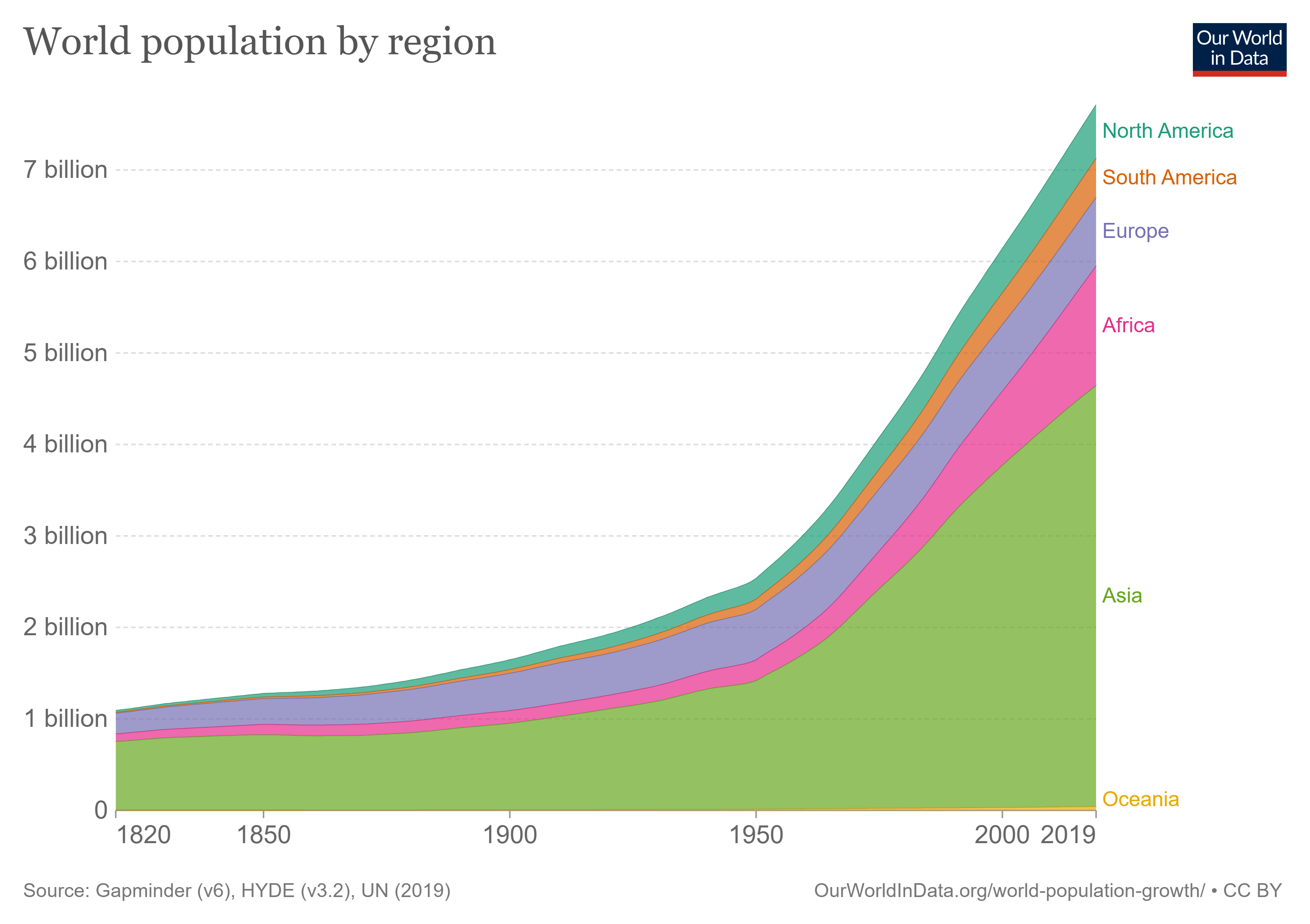 ზრდის ყველაზე მაღალი მაჩვენებელი აზიასა და აფრიკაშია, ევროპის "წვლილი" კი არადამაკმაყოფილებელია. როგორც წესი, ქვეყნები შობადობის ყველაზე მაღალი დონით, არიან ყველაზე ღარიბი ქვეყნები ამავდროულად, სადაც ერთ სულ მოსახლეზე ყველაზე დაბალია შემოსავალი. ამიტომაც, დროთა განმავლობაში მოსახლეობის გლობალური ზრდა სულ უფრო კონცენტრირდება მსოფლიოს ღარიბ ქვეყნებში, რომელთა უმრავლესობა მდებარეობს აფრიკაში, საჰარის სამხრეთით.