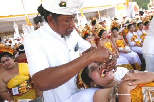 როდესაც ახალდაქორწინებულები ოჯახურ თანაცხოვრებას იწყებენ და პატარძალი მთლიანად საქმროს მეურვეობის ქვეშ გადადის, ფრიად საინტერესო რიტუალი სრულდება. ახალდაქორწინებულებს თქვენ წარმოიდგინეთ და, კბილებს უქლიბავენ. რწმენის მიხედვით ეს მათგან რისხვას, შურს, ვნებას და სიხარბეს განდევნის.