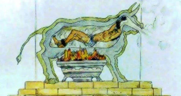 ძველი ბერძნები დამნაშავეებს უზარმაზარ ბრინჯაოს ხარში გამოწვით სჯიდნენ. მას ქანდაკებაში სვამდნენ, კეტავდნენ და მის ქვეშ ცეცხლს ანთებდნენ.
