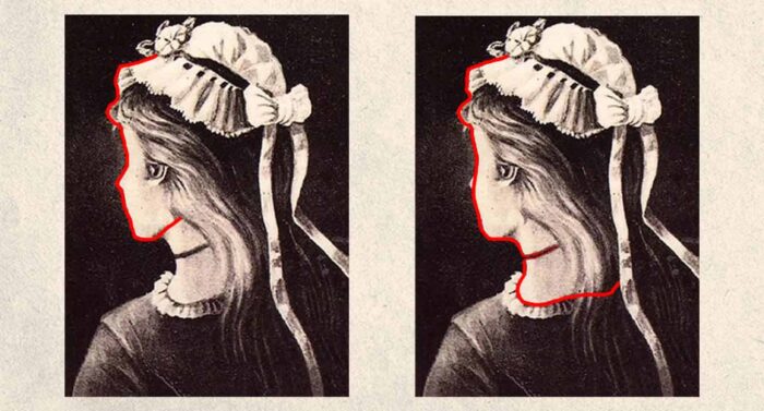 ფოტოზე წარმოდგენია საფოსტო ბარათი, რომელიც 1888 წელს გერმანიაში შექმენს. ის 1915 წელს ამერიკულ იუმორისტულ გაზეთში გამოქვეყნდა სახელწოდებით "ჩემი ცოლი და სიდედრი".