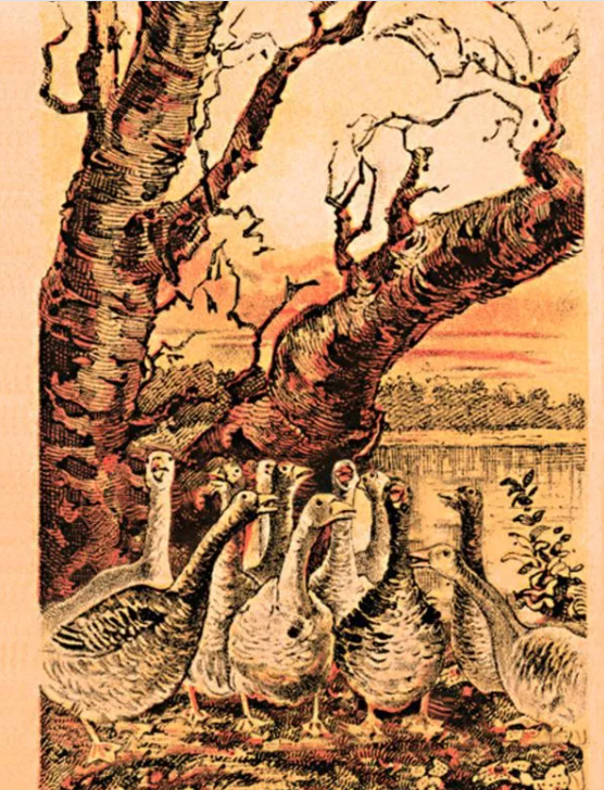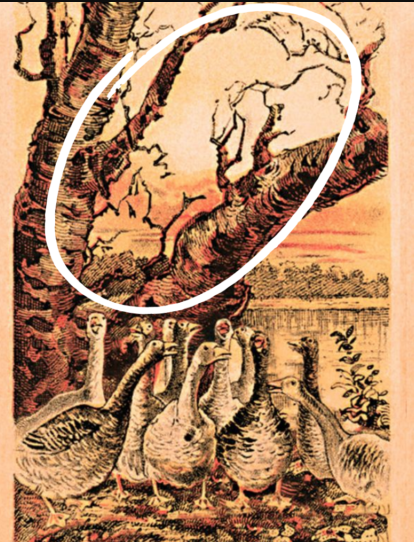 ერთი შეხედვით სურათზე ბატებია გამოსახული, რომლებიც ტყეში ხის ფონზე იმყოფებიან. თუმცა ფოტოზე ასევე იმალება ცხოველი, რომელსაც მათზე თავდასხმა სურს.