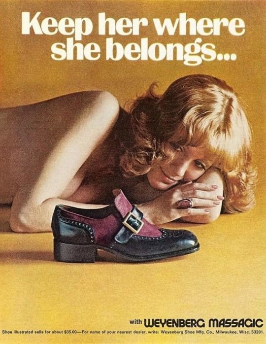 იმ დროს ითვლებოდა, რომ ქალი გაფანტული არსებაა და დაედევნება მათ, ვინც მეტი შესთავაზა. ასეთი ჩექმის რეკლამის მარკეტერებმა აქცენტი გააკეთეს და კომპანიის სლოგანი შექმნეს "დაიტოვე იქ, სადაც მისი ადგილია", მიაჩნიათ, რომ ქალი აუცილებლად იქნება მასთან, ვინც აცვია Weyenberg-ის ფეხსაცმელები.