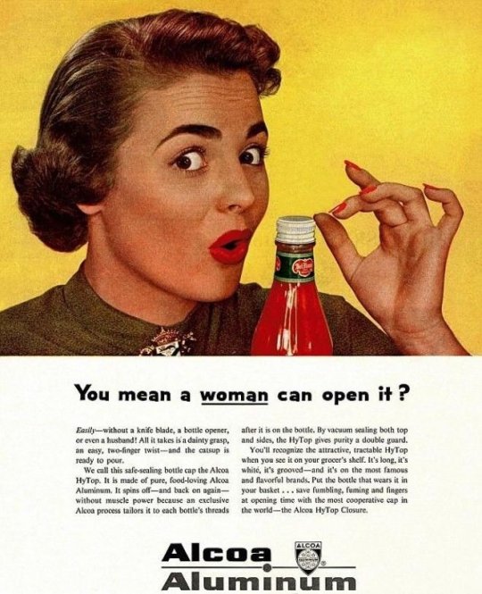 50-60-იან წლებში მარკეტინგის სამყაროში მამაკაცები დომინირებდნენ. მათ შექმნეს ახლანდელი სექსისტური კომპანიის პლაკატები, რომლებიც ასახავს ქალებს, როგორც მამაკაცების მეორე კლასის შემავსებლებს, ხმის მიცემის უფლების გარეშე და მხოლოდ ოჯახის მენეჯმენტზე გავლენით.