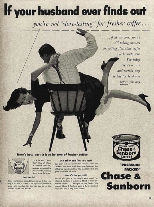 ყავის რეკლამა: "თუ შენი ქმარი გაიგებს, რომ ახალი ყავა არ გასინჯე...".