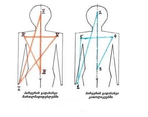 საქმე იმაშია, რომ ხელის ამ ტრაექტორიით მოძრაობა ქრისტიანული სიმბოლიკის მიხედვით, მიანიშნებს ღმერთისადმი მიმართვას, ხოლო მარჯვნიდან მარცხნივ მოძრაობა - ღვთის მიერ მორწმუნებიის კურთხევას.